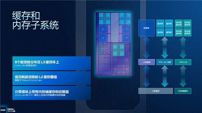 缓存系统的升级是性能提升的另一关键。Panther Lake打造了"L1+L2+Memory Side Cache"三级缓存体系,新增的8MB内存侧缓存使DRAM访问延迟降低30%,数据命中率高达95%。在Stable Diffusion文生图模型测试中,这一缓存设计让推理速度提升22%,显著优化了AI任务处理效率。
