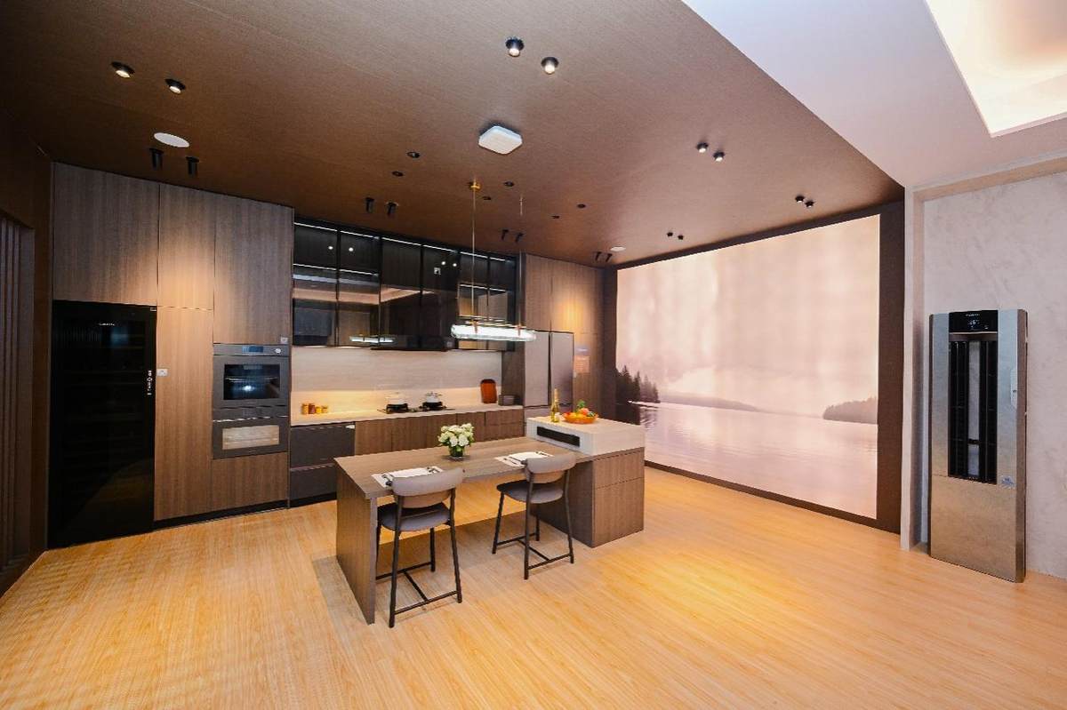 其中,卡萨帝揽光套系以极简设计语言、零距离嵌入、超薄组合等设计方案,精准回应了现代家居对空间秩序与艺术美感的双重诉求;致境套系是全球首个全空间融合成套方案,以能“隐身”的冰箱、超薄全嵌的洗衣机、超薄平贴的电视等表达了“致大成、隐于境”的极隐美学理念;鉴赏家套系则搭载了“AI之眼”,冰箱可以识别食材并主动调控储鲜环境,烟机会“看锅”,空调可以“风避人吹”,电视既能实时推送一家人喜欢的节目,也能作为家庭智慧中枢,实现一屏控全家,为用户构建起覆盖衣食住娱的全流程高端体验。