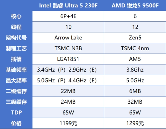 九月上旬,AMD推出了中国特供的千元价位处理器锐龙5 9500F,我当时形容它是降频去核显版的9600X。而Intel这边也有一款类似的处理器:Ultra 5 230F。今天我们将这两款处理器进行对比,看看谁才是千元级别处理器的王者。