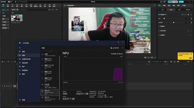 这一代处理器中首次出现了NPU,拥有13TOPS的算力。NPU专注于神经网络运算,其计算单元、数据路径和存储结构都进行了深度优化,能高效的执行深度学习模型中的关键操作,实现更高的计算效率和能效比。如今也有不少软件支持NPU,例如剪映的智能抠图功能,这些都是230F独有的优势。
