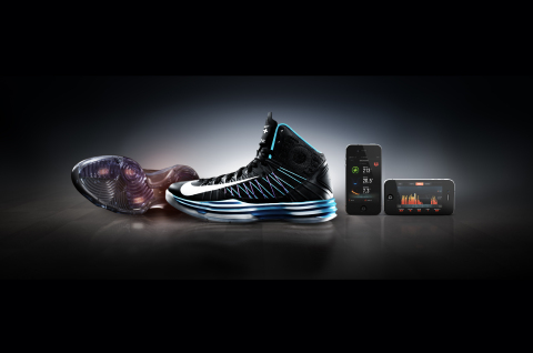 耐克公司今天发布Nike+ Basketball和Nike+ Training:这两种新体验结合互动式移动应用与搭载数字科技的运动鞋,而创造出革命性的运动体验。率先推出的NIKE+运动鞋将是Nike Hyperdunk+篮球鞋(如图)以及Lunar Hyper Workout+训练鞋(女款)和Lunar TR 1+训练鞋(男款)。(照片:美国商业资讯)