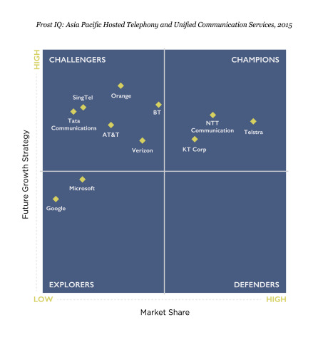 东京--(美国商业资讯)--NTT集团(NYSE:NTT)旗下的信息通信技术(ICT)解决方案及国际通信业务提供商NTT Communications Corporation (NTT Com)今天宣布,该公司入选Frost Industry Quotient (IQ) - 2015年亚太托管电话与统一通信即服务提供商“冠军”行列。