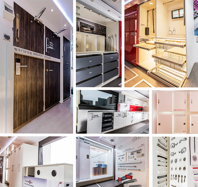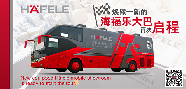 不仅如此,为了实现与客户的零接触,海福乐大巴于2012年首次启程。海福乐中国展厅大巴是一个简单的移动展厅,高4.0米,宽2.5米,长12米,展示了海福乐部分最新的家具五金及建筑五金产品。它为无法参观海福乐展厅的家具厂商、设计机构、开发商等合作伙伴提供了近距离了解和感受海福乐产品及服务的机会!通过亲手触摸,感受海福乐五金强大的功能性。