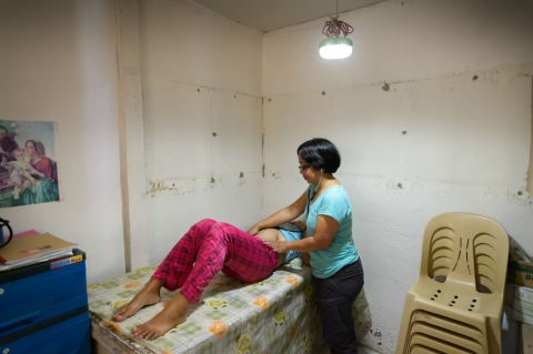 松下太阳能灯用于菲律宾不通电村庄的诊所的产前检查(照片:松下公司)