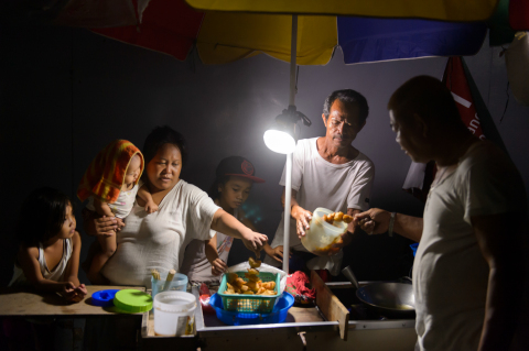 在菲律宾遭受超级台风摧毁的地区,松下太阳能灯用于在夜间增加收入(照片:松下公司)