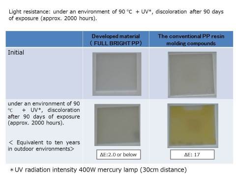 *2) 因为光扩散型聚丙烯树脂(PP)模塑料适用于注拉吹塑成型,截至2016年4月5日(公司调查)。