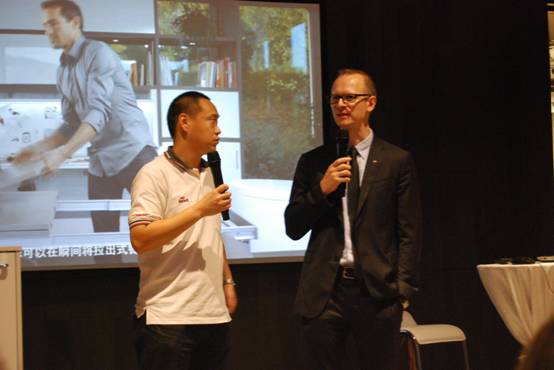 在发布会上,海福乐中国销售总监Fahner先生介绍了公司与德国老牌厨卫供应商VAUTH-SAGEL的长期战略合作关系,并推出了VAUTH-SAGEL的最新产品和最新设计系列之CORNERSTONE新型角柜解决方案——这也是VAUTH-SAGEL在中国的首秀。
