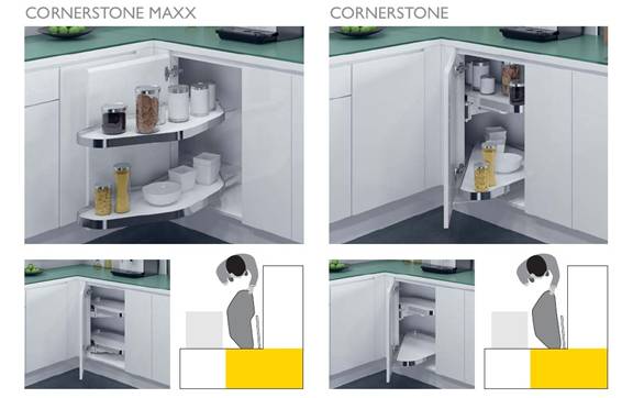 - CORNERSTONE MAXX:托盘可自动收回和伸出— 开门角度仅85°。