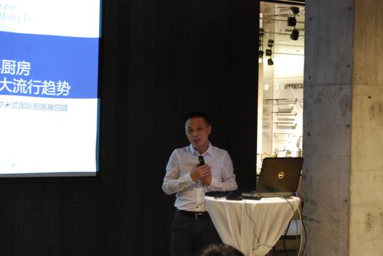 《精品厨房》全媒平台出品人严黎以《2016米兰展厨房设计的八大趋势》为题发表了演讲,他提出,厨房八大趋势分别是:1.互动空间、2. 隐藏式、3.个性化、4. 陈列式、5. 橱柜表里不一、6. 标准化、7.翻门设计、8. 场景生活化。