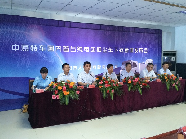 近日,中原特总车辆有限公司历经3个月刻苦攻关,成功研制出的国内首台纯电动、大吨位、多功能抑尘车在河南濮阳下线。中原特车将于2016年9月6-8日携带该抑尘车亮相在濮阳市华龙区展览中心举行的第三届中原(濮阳)油气技术装备展览会。