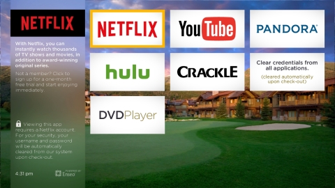 2014年,Enseo成为首家授权酒店并部署Netflix应用的酒店整合商。由强大的硬件、灵活的软件和技术服务组成的一流平台作为支撑,Enseo已设计出不断发展的平台,以满足酒店品牌、酒店业主,最重要的是宾客日益变化的需求。