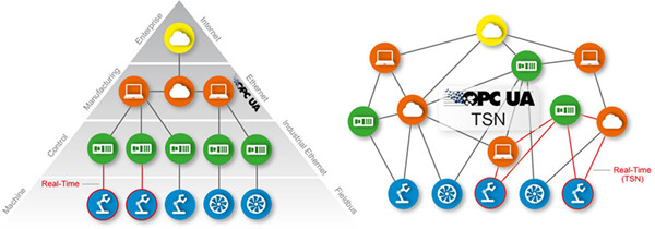 由于用户对连接度和灵活性的要求更加严格,自动化金字塔模式的这种结构越来越受到诟病。为了更直接地提供底层数据,设备所有者转向开放的OPC UA标准。该标准提供了一种模式,即管理层和企业层的OPC UA“客户端”能够直接从设备层的OPC UA“服务器”调用数据。