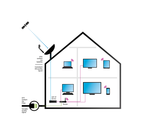 • SAT>IP technology makes it possible to distribute satellite TV services in an efficient way to any device connected to a domestic IP network