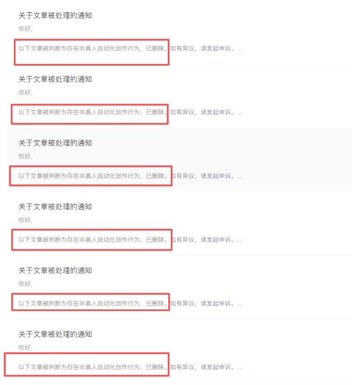 另有运营者反映,自己纯手写的关于AI辅助撰写公众号内容的教程文章,也接连被平台删除。